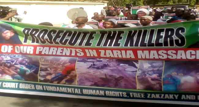 School children on Thursday marched the streets of Kaduna demanding the release of leader of the Islamic Movement of Nigeria, Ibraheem El-Zakzaky and his wife, Zainab El-Zakzaky.